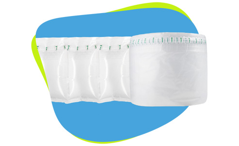 The nylon air package filler Bublaki 20x9 cm occupies very little space before being inflated. When deflated it is flat, like paper, compact, and wound on a roll, which helps reduce storage costs. Air fillers are produced directly at the packing station in the quantity needed at the moment. Air fillers do not affect the weight of the shipment, as they are composed of about 90% air and only 10% film. This is the lightest carton filler available on the market.