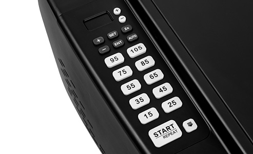 Dyspenser posiada panel sterowania z wyświetlaczem i wieloma funkcjami, m.in. 10 gotowych długości, przyciski +/- do ustawienia dowolnej długości, możliwość zaprogramowania sekwencji oraz opcję AUTO